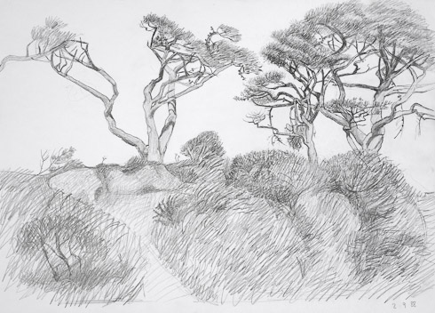 398 Lepe Beach Trees - c1998 - pencil on paper - 29x41cm