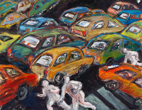 205 Men in Traffic - c2003 - oil on canvas - 35x46cm